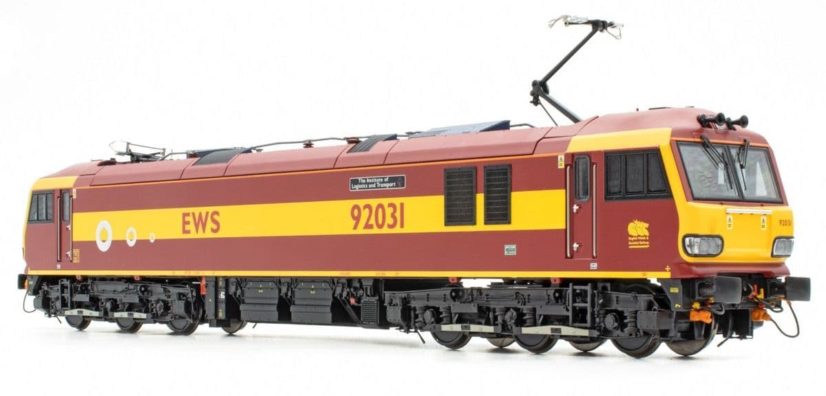 One of only two Class 92s repainted in EWS maroon and gold, 92031 was unveiled at the Institute's annual conference in Birmingham in June 2001, having originally been allocated the unused name Schiller.