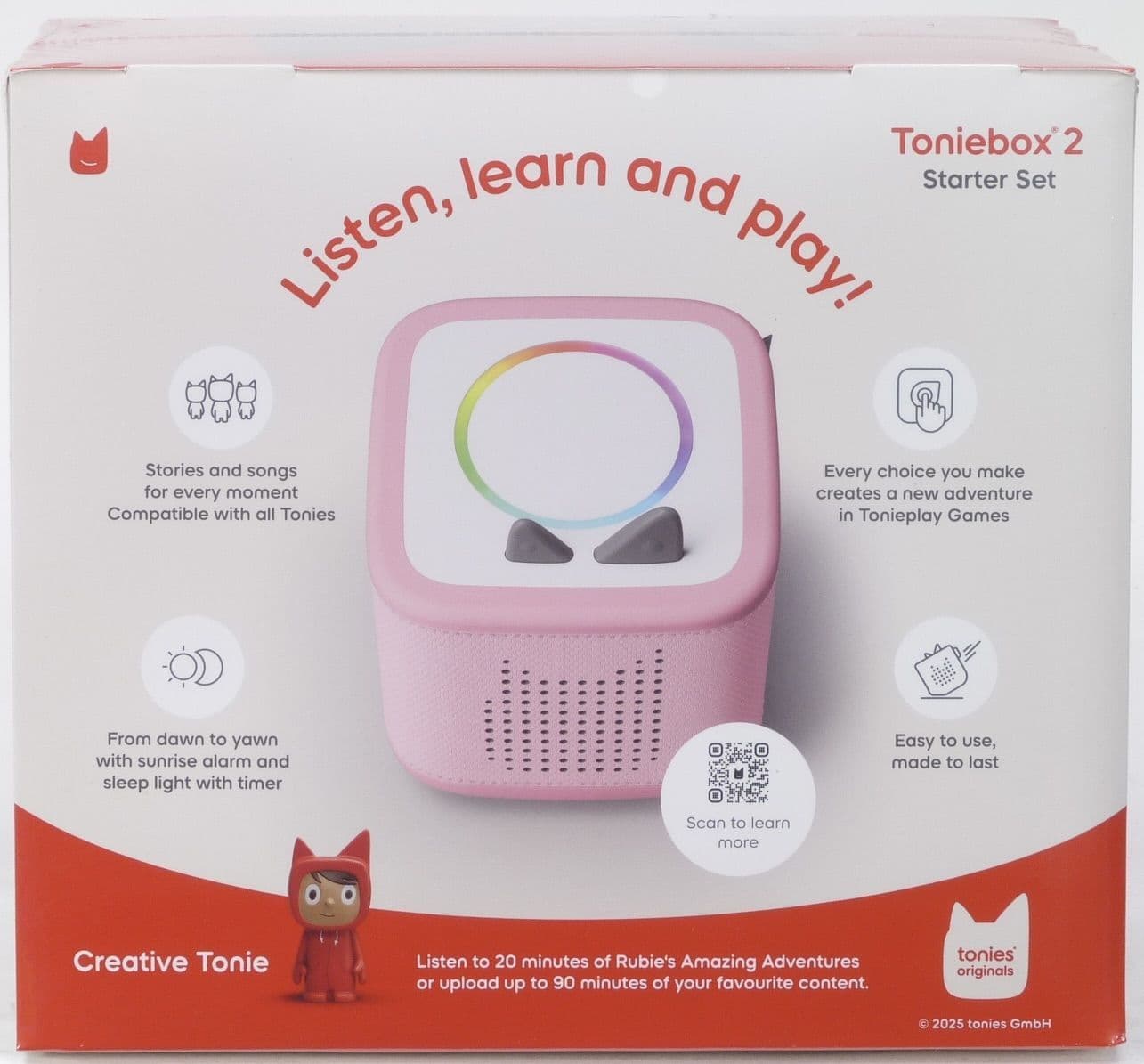 The Toniebox offers unlimited listening and playing fun: With Tonies, Pocket Tonies, Book Tonies, and Creative Tonies, little explorers can immerse themselves in their favorite stories. And the Toniebox 2 offers even double the fun: With Tonieplay, children can experience screen-free, interactive games, quizzes, and challenges.